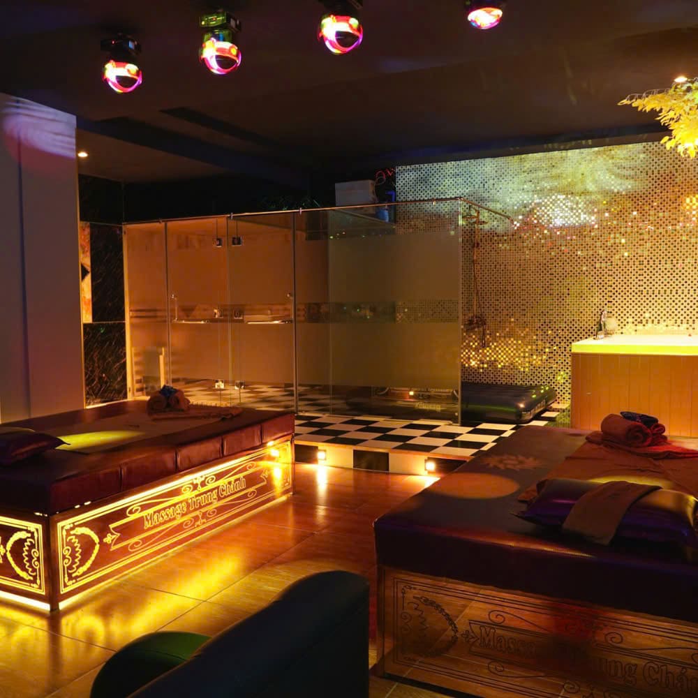 - Không gian: Sang trọng với đèn vàng ấm áp, phòng riêng tư có bồn sục Jacuzzi.